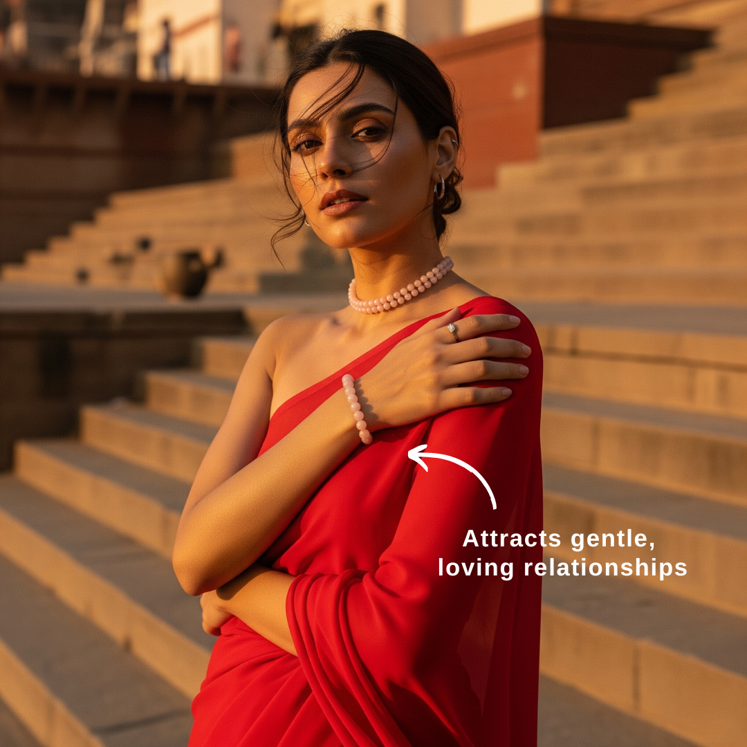 Best Days to Wear: The first Friday of the month, a day sacred to Venus’ love and beauty, is ideal for wearing the BlushStone Rose Quartz. This auspicious time amplifies Rose Quartz’s loving energy, aligning your heart with Kashi’s divine embrace.