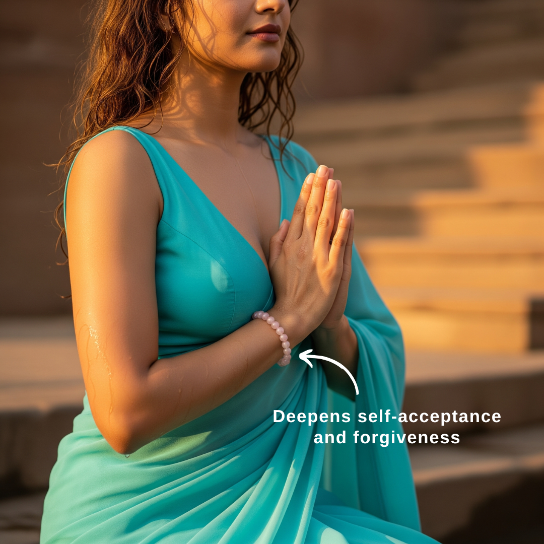 Wear the Kashi BlushStone Rose Quartz Bracelet and let your heart bloom with compassion, confidence, and divine love