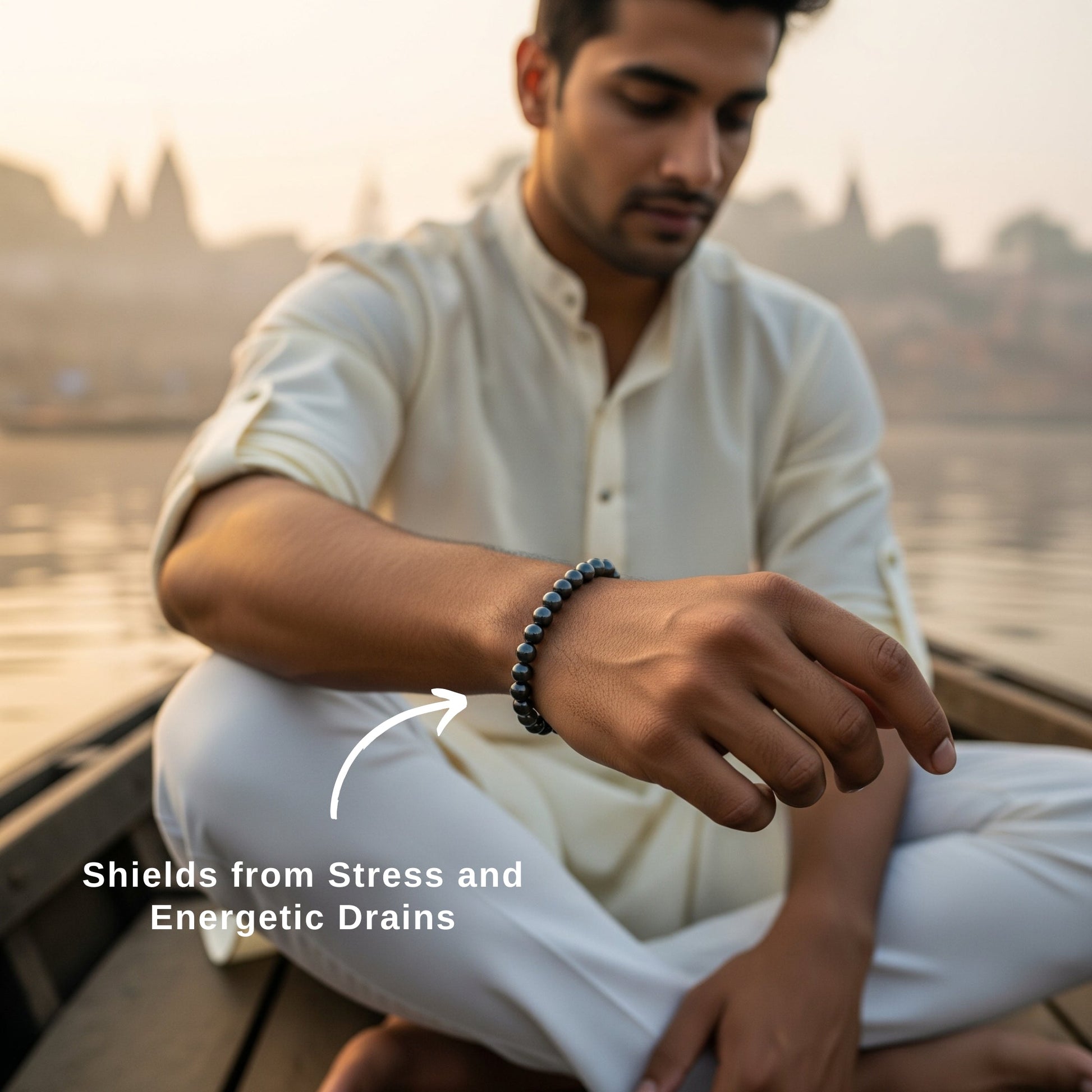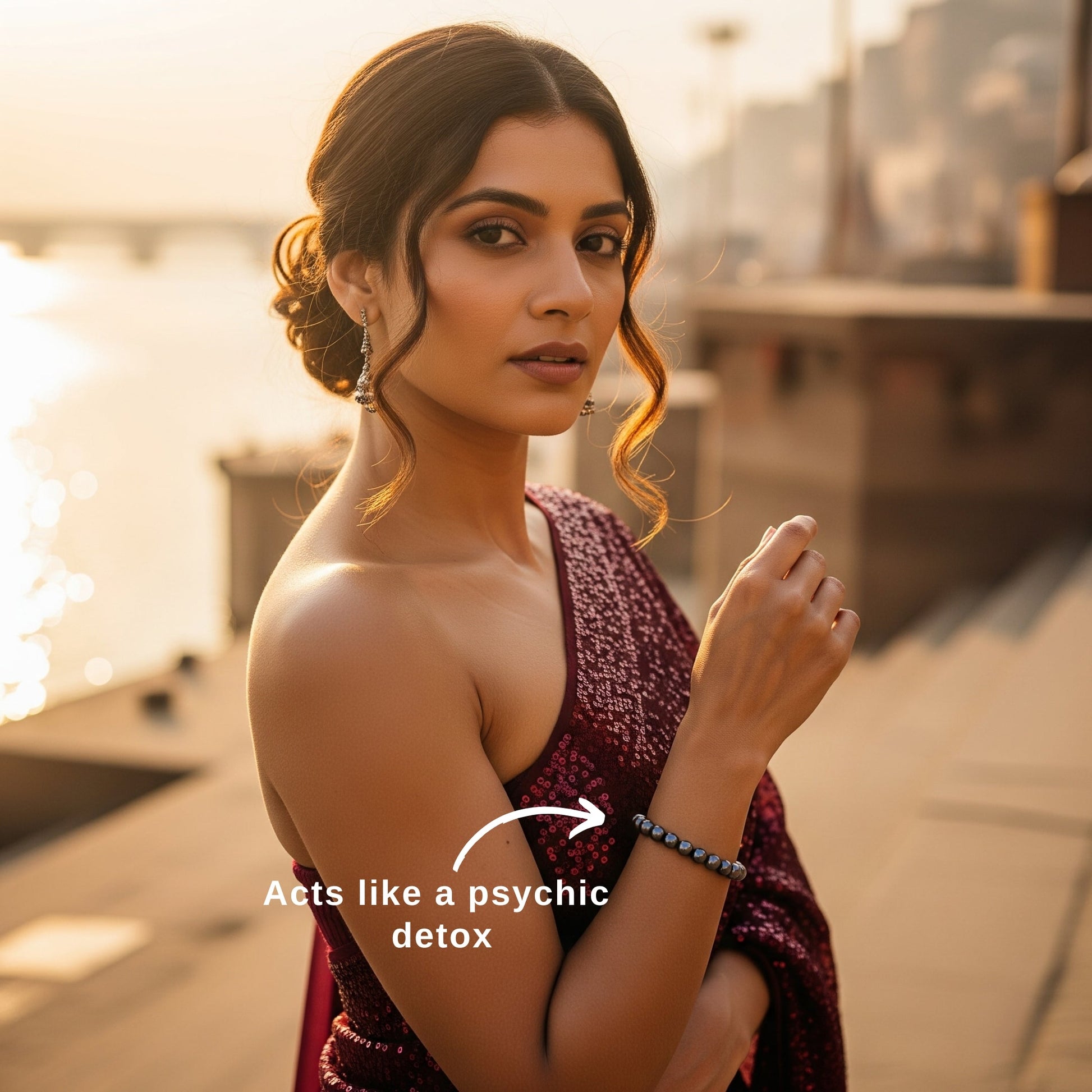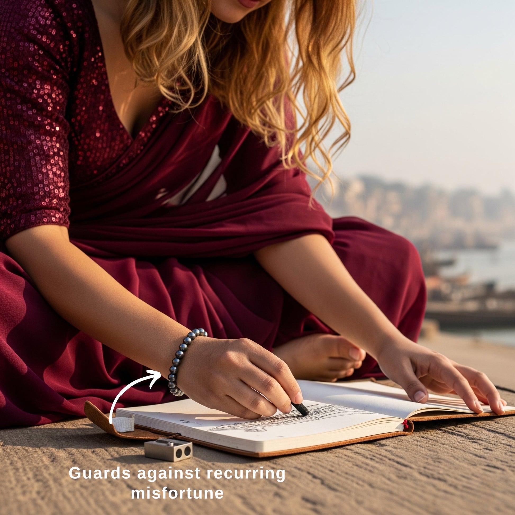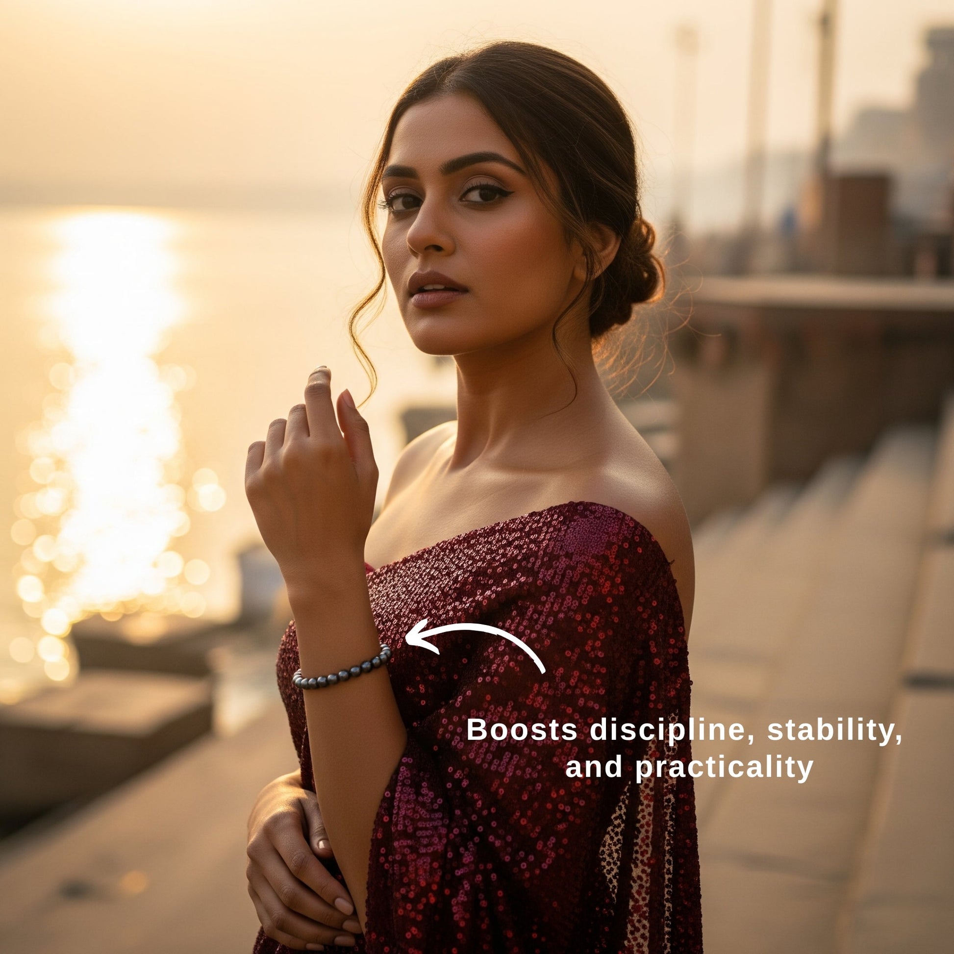 .The Debt Reliever Bracelet is specially designed for those seeking financial freedom, particularly relief from debts, loans, and ongoing EMIs. Harnessing the grounding and protective energy of original hematite beads, this bracelet is blessed at the Shani Temple near Kedar Ghat, where ancient rituals were performed to appease Shani Dev — the karmic judge of debts, delays, and lessons.
