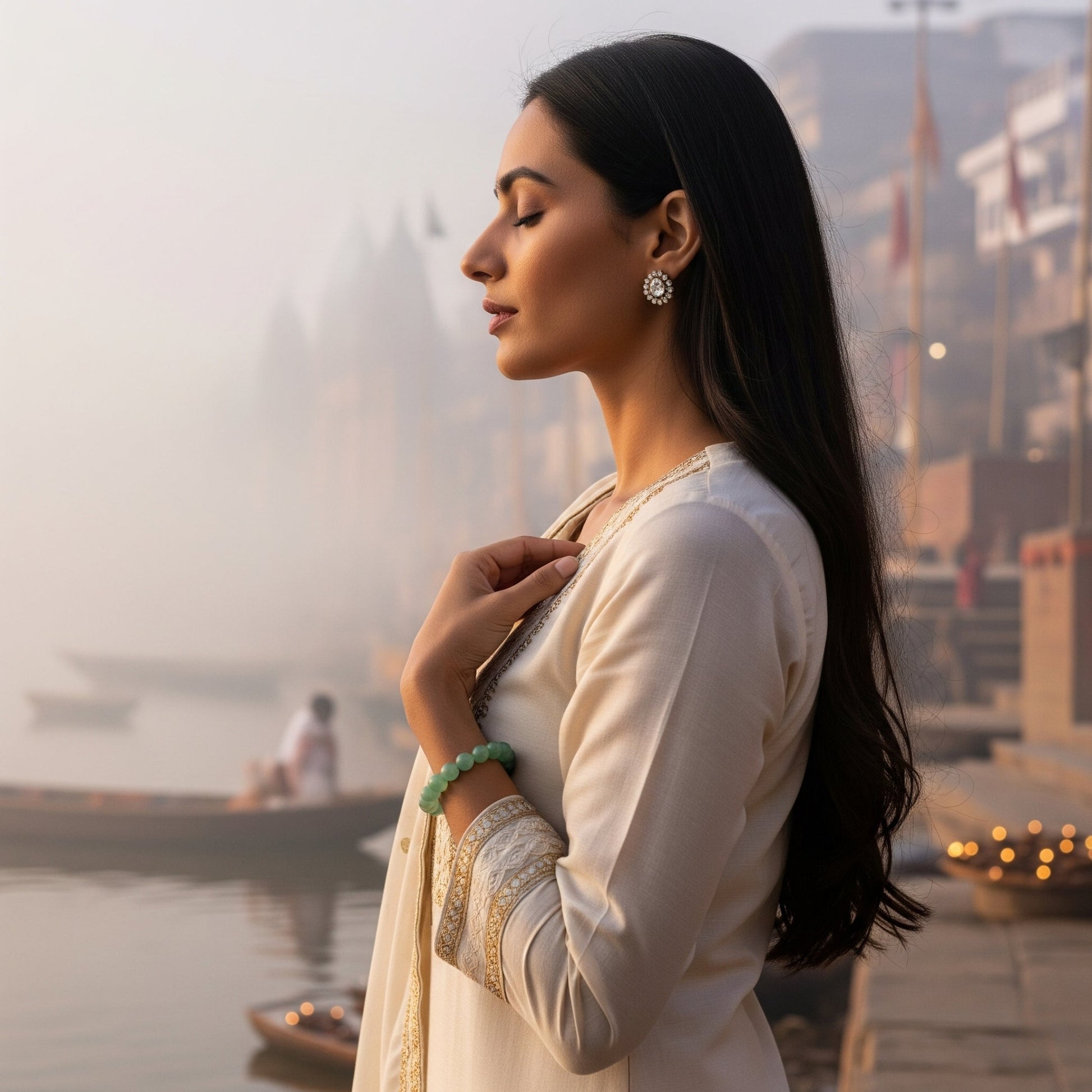 Kashi Haritshree isn’t just worn — it’s carried like a silent prayer of the Ganga, gently aligning your heart with destiny.