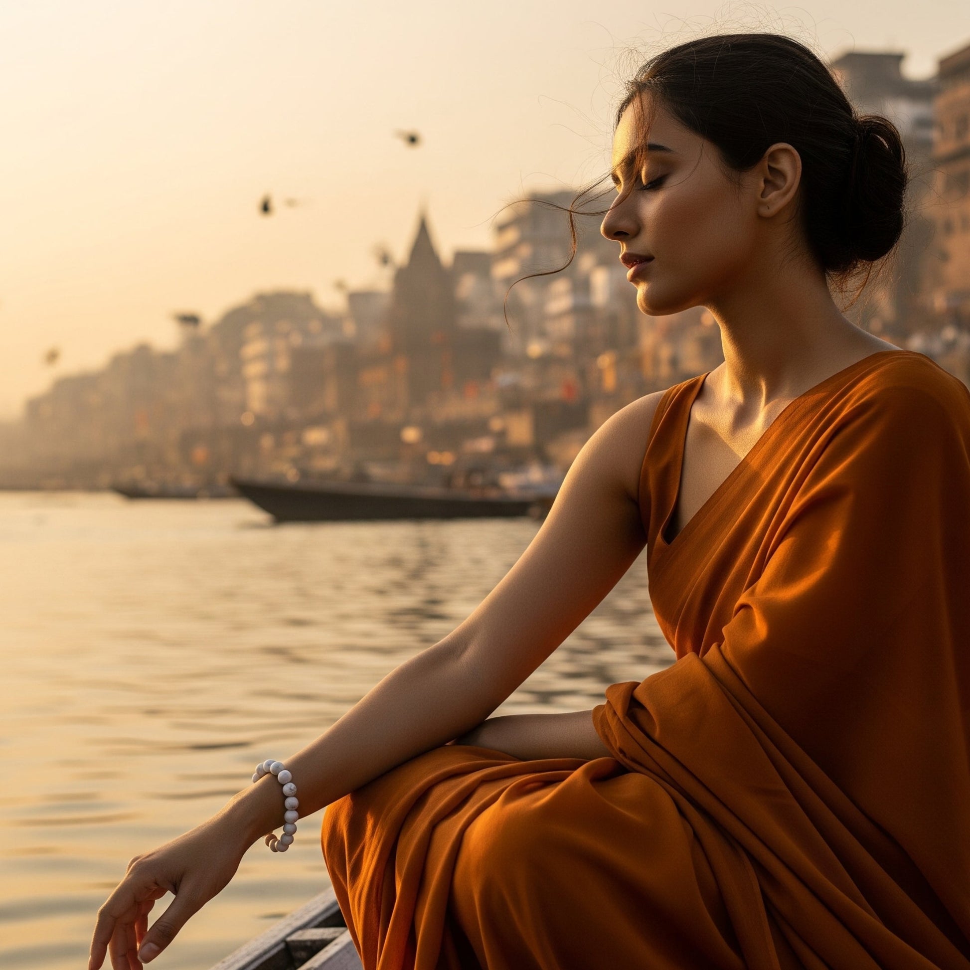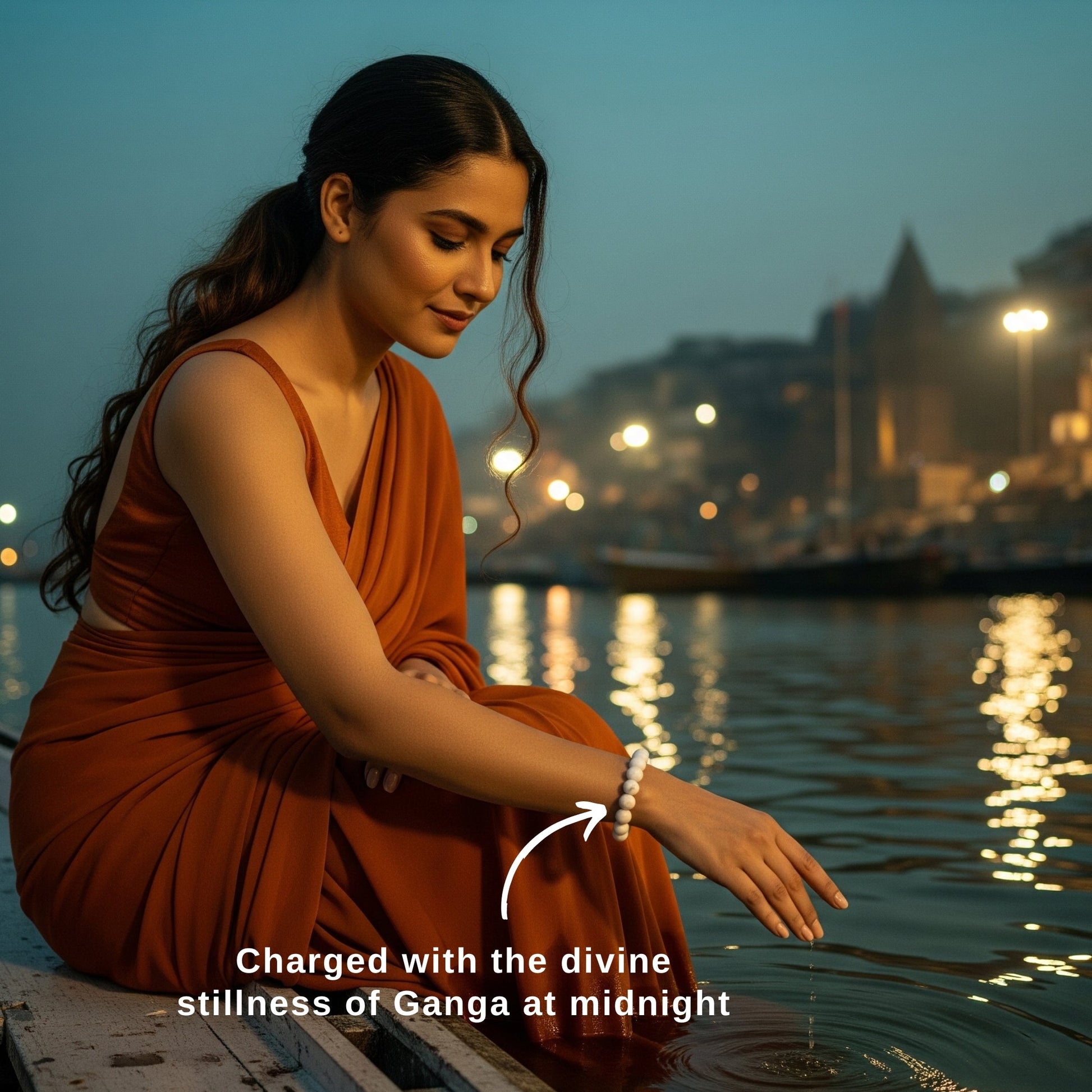 Wear the band on your left wristย at moonrise on a Monday (Somvar)โ€”the Moonโ€™s dayโ€”to align its serene frequency with Chandraโ€™s glow over the Ganga, inviting lasting peace, clarity, and emotional renewal into your routine