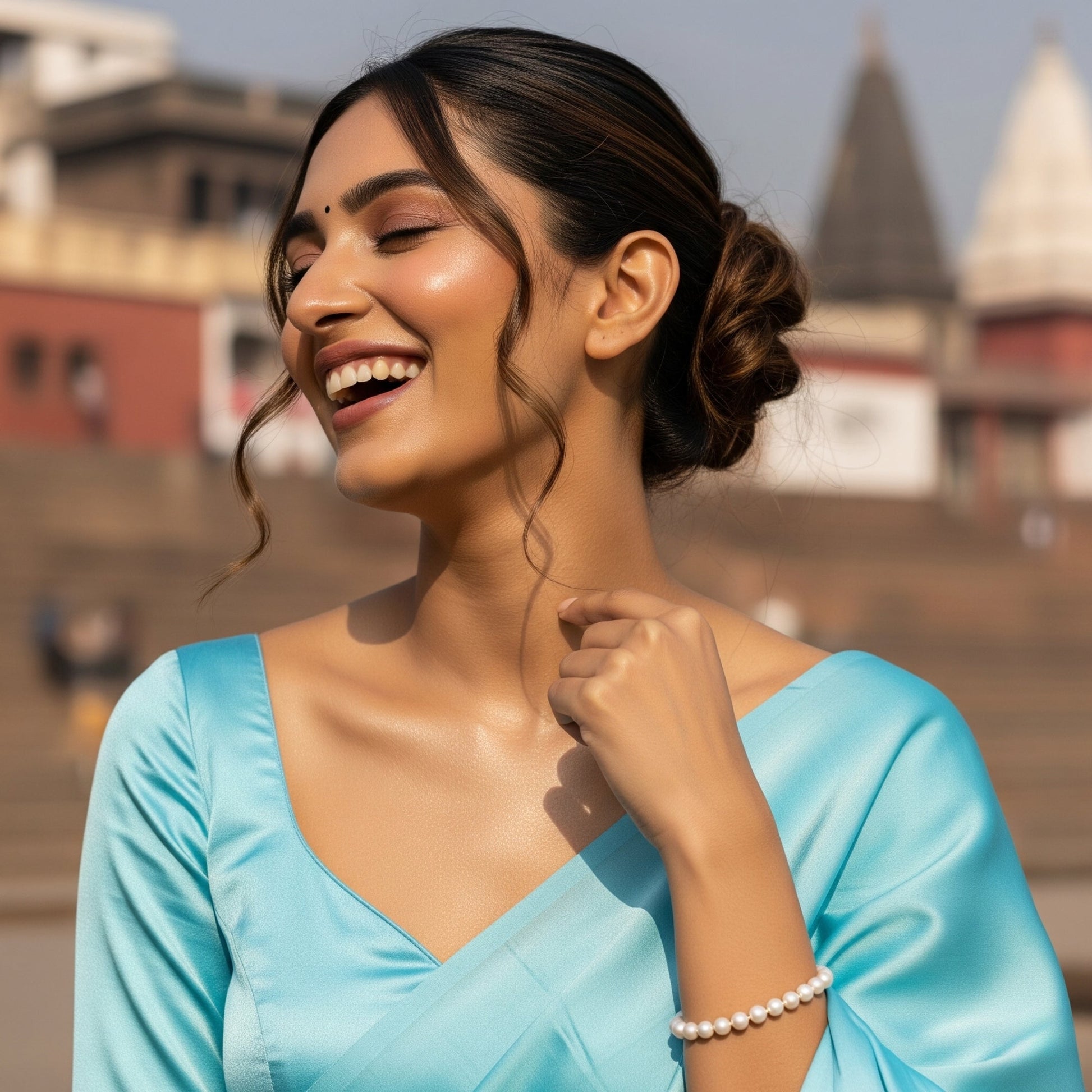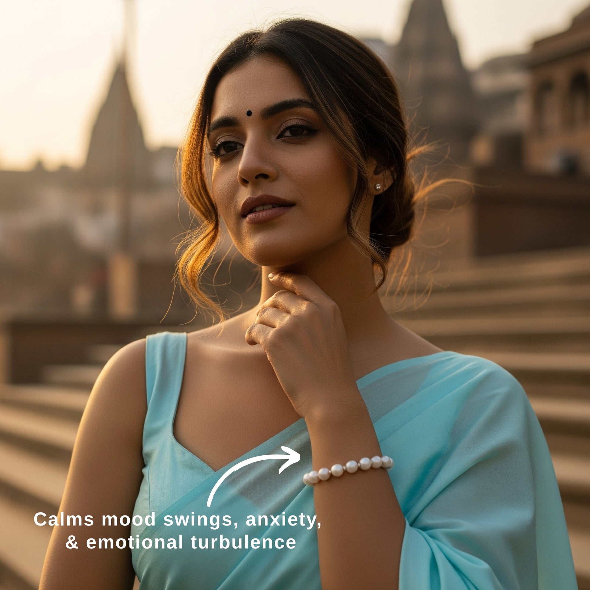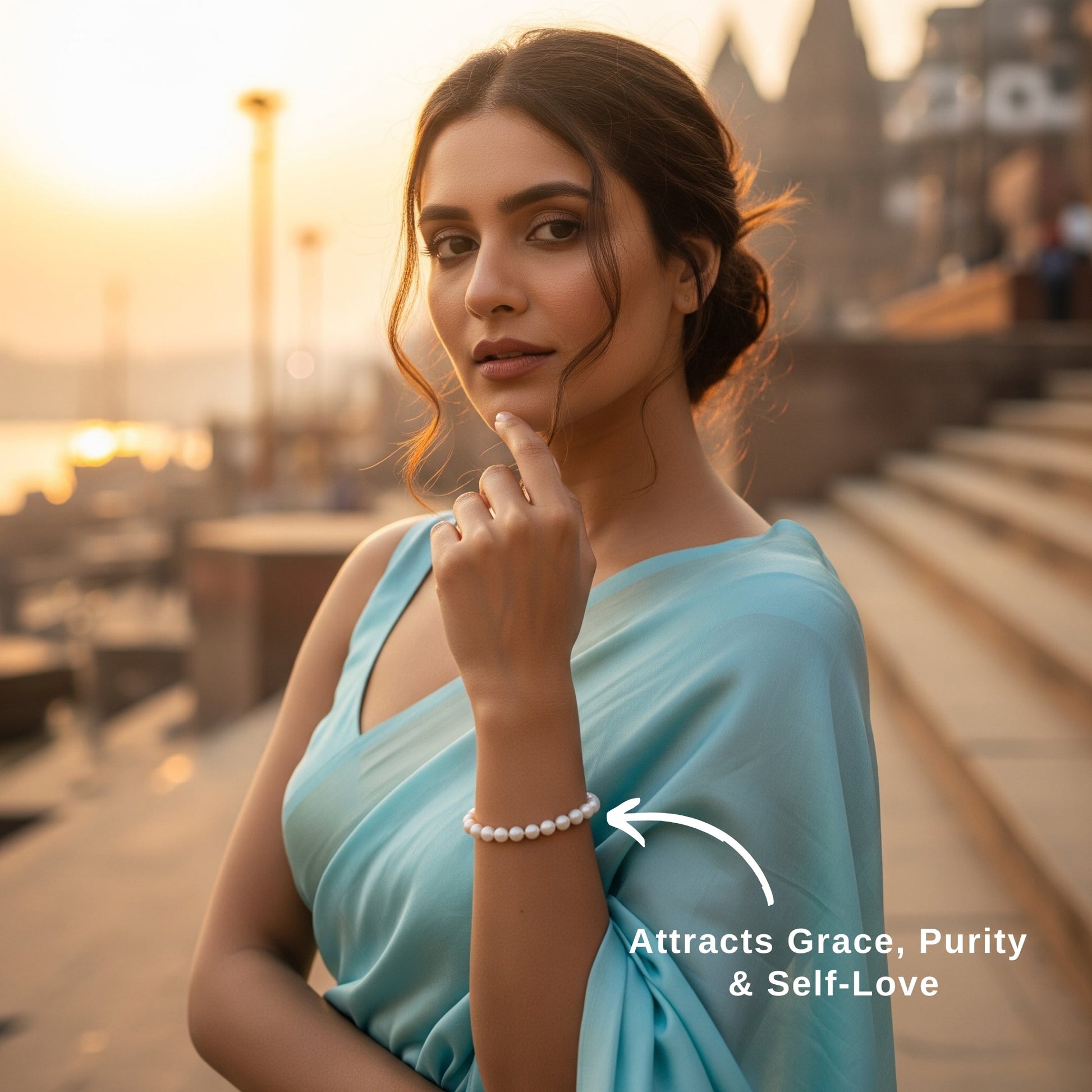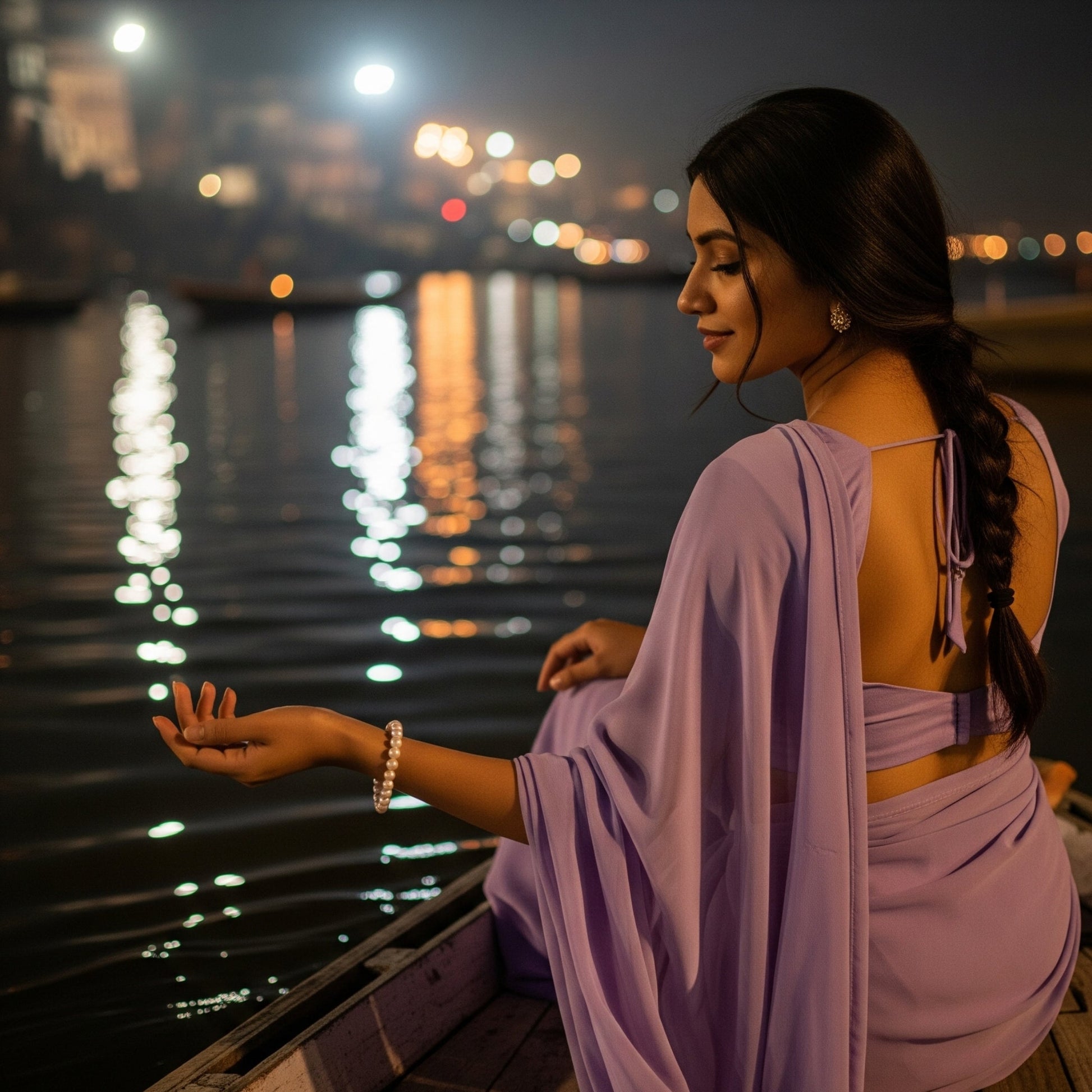 Wear the bracelet on your left wrist at dawn or moonrise on a Monday (Somvar)—the day ruled by Chandra (the Moon)—for maximum spiritual resonance. Quietly recite the simple mantra “Om Chandraya Namah” to synchronize your inner rhythms with both the lunar energy and Kashi’s enduring tranquilit