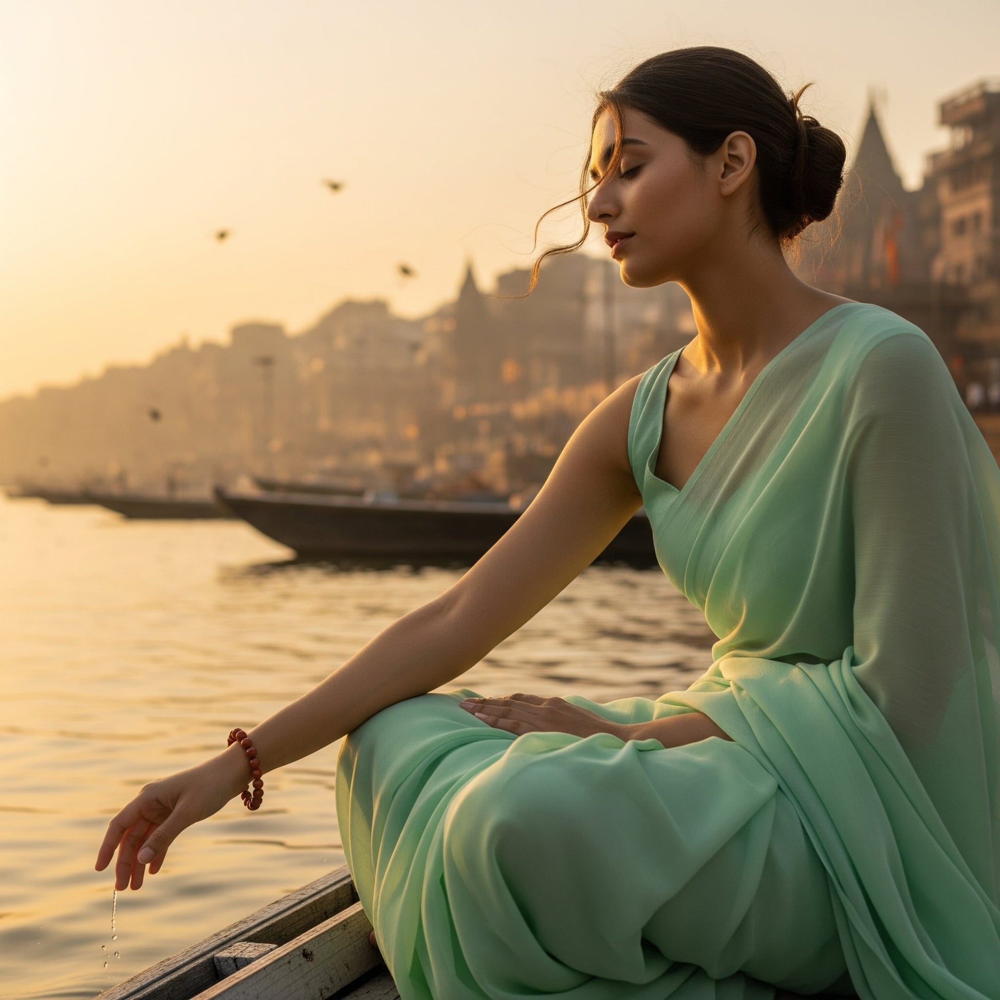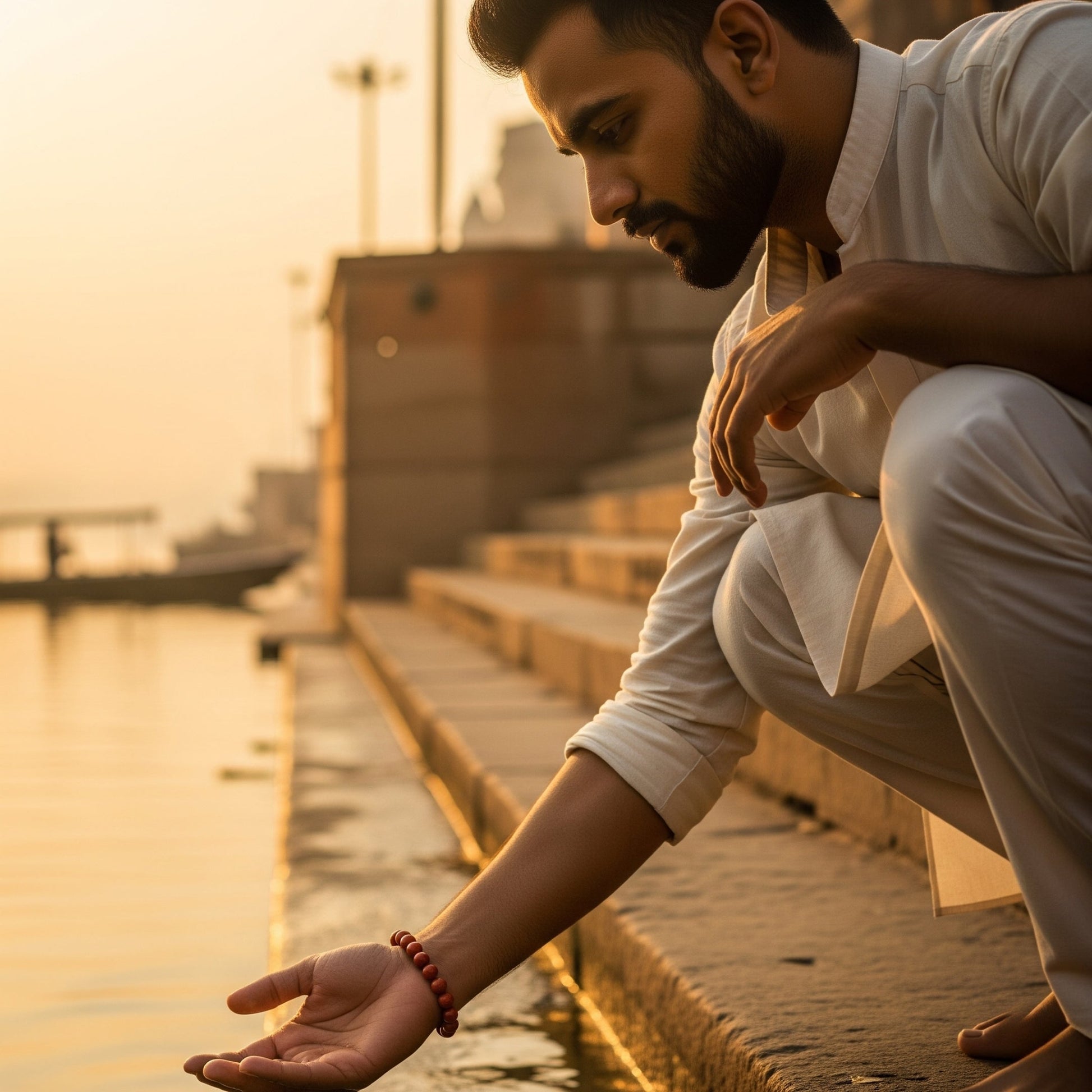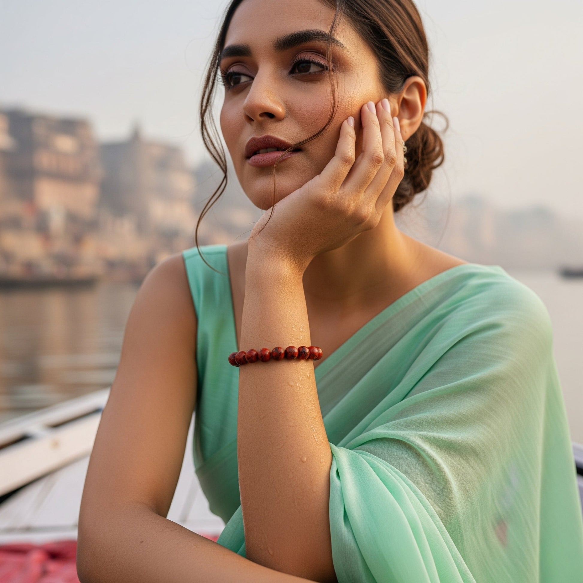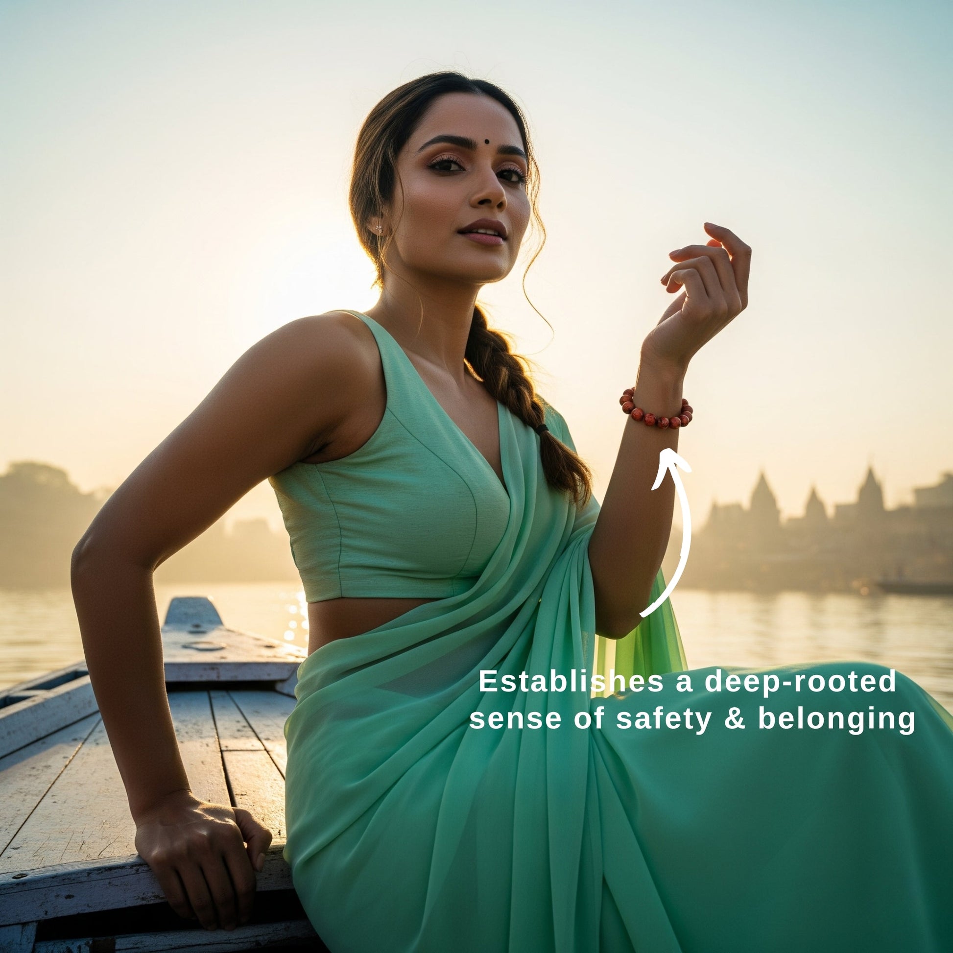 Revered as a guardian stone, it helps dispel negativity while the bracelet’s Ganga blessing weaves in Kashi’s protective spiritual current.